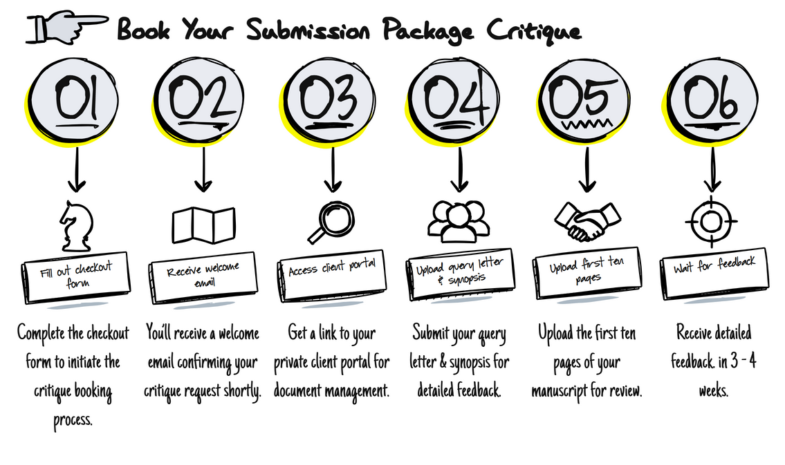 Includes your full submission package: query letter, synopsis, and first 10 pages.